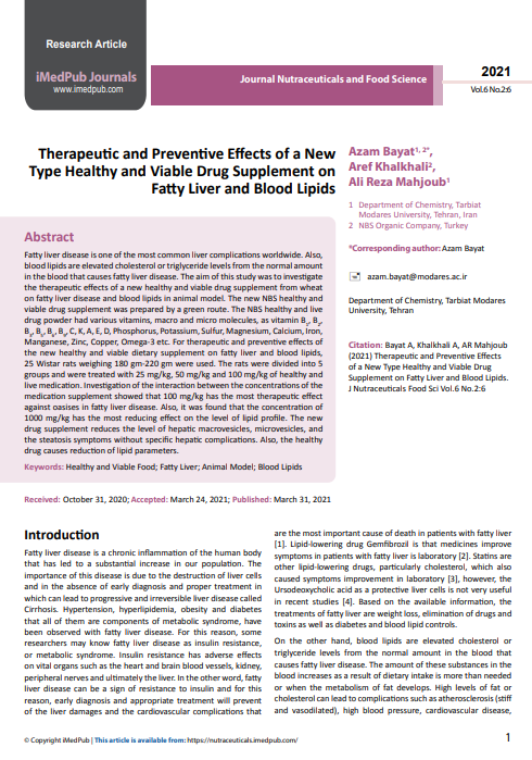اثر گذاری سوپرفود NBS بر رفع کبد چرب وچربی خون